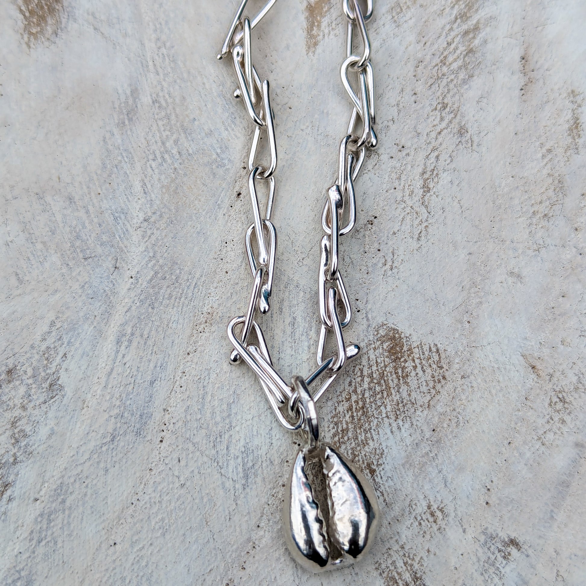 Handmade with sterling silver, this sweet, little cowrie shell pendant is a nice addition to your layered necklaces. Check out the earrings if you want to make it a set!