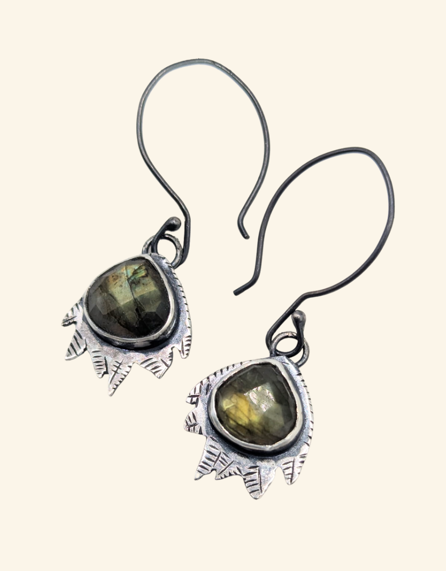 I think earrings should be sisters. The labradorite offers flashes of several green tones, which make them reminiscent of a walk in a tropical forest.