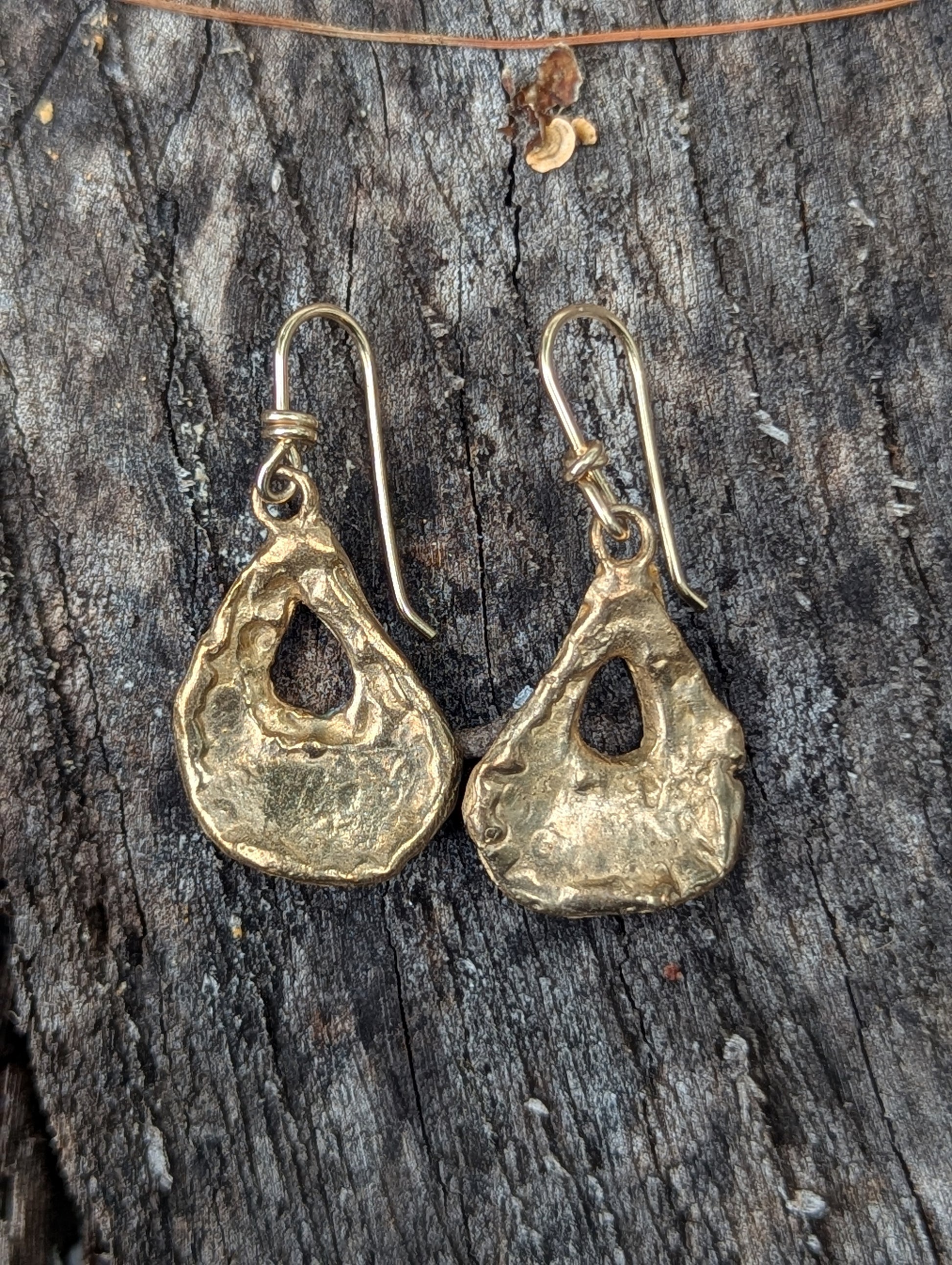 These delicate earrings are the ideal complement to any item from the Oyster necklace collection or any silver piece. Finished entirely in bronze, and brushed with renaissance wax, they offer a graceful, shimmering gold colored dangle that enhances your effortless style.