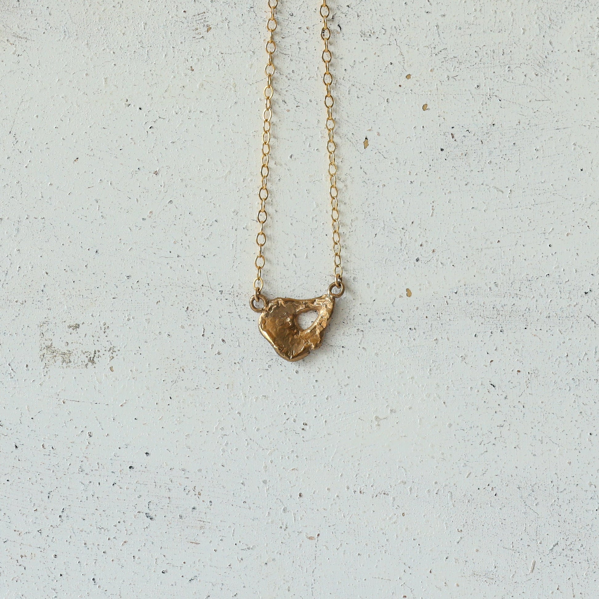 The small oyster necklace says how much you love the beauty and mystery of the sea. Or maybe just oysters :-). Designed in wax and cast in bronze. Finished with a wax coating.